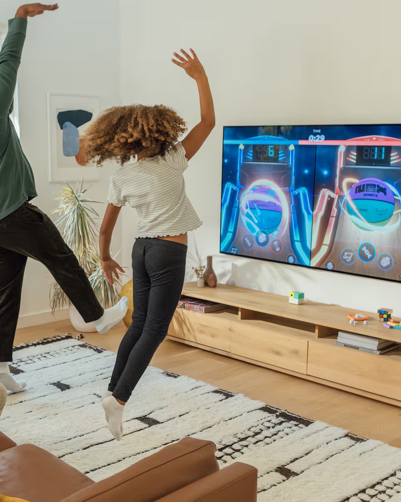 Dank der intelligenten Kamera wird jede Bewegung – ein Sprung, eine Geste, ein Lauf – sofort erkannt und in eine Aktion auf dem Bildschirm umgesetzt.